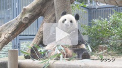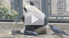 カラスにつつかれるリーリー、竹を食べるシンシン。