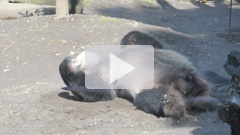 リーリーが砂場でごろごろする様子。気温がやや高く、日差しのある日中にすることが多い。「あ〜あ〜あ〜あ」